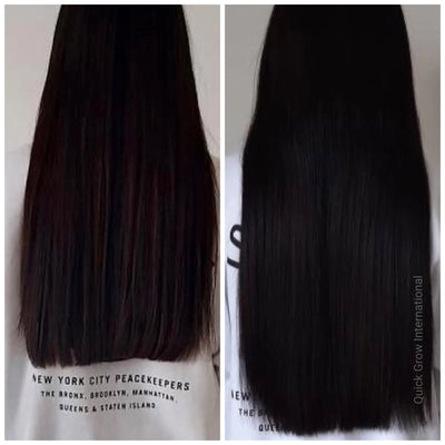 "I've been using Quick Grow products for more than a year now and I've gotten amazing results. My hair is so much stronger and healthier than before. I'ts honestly the best hair growth products by far! These pictures are 4 months apart"